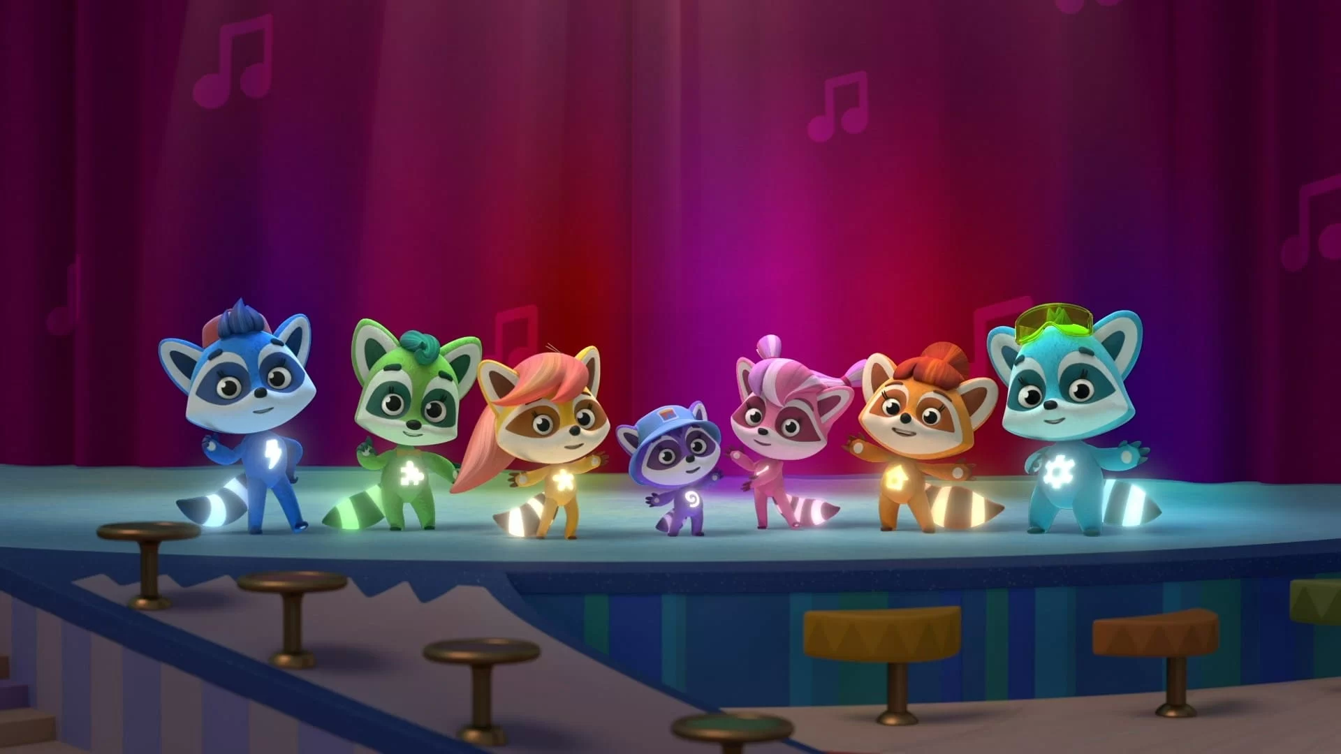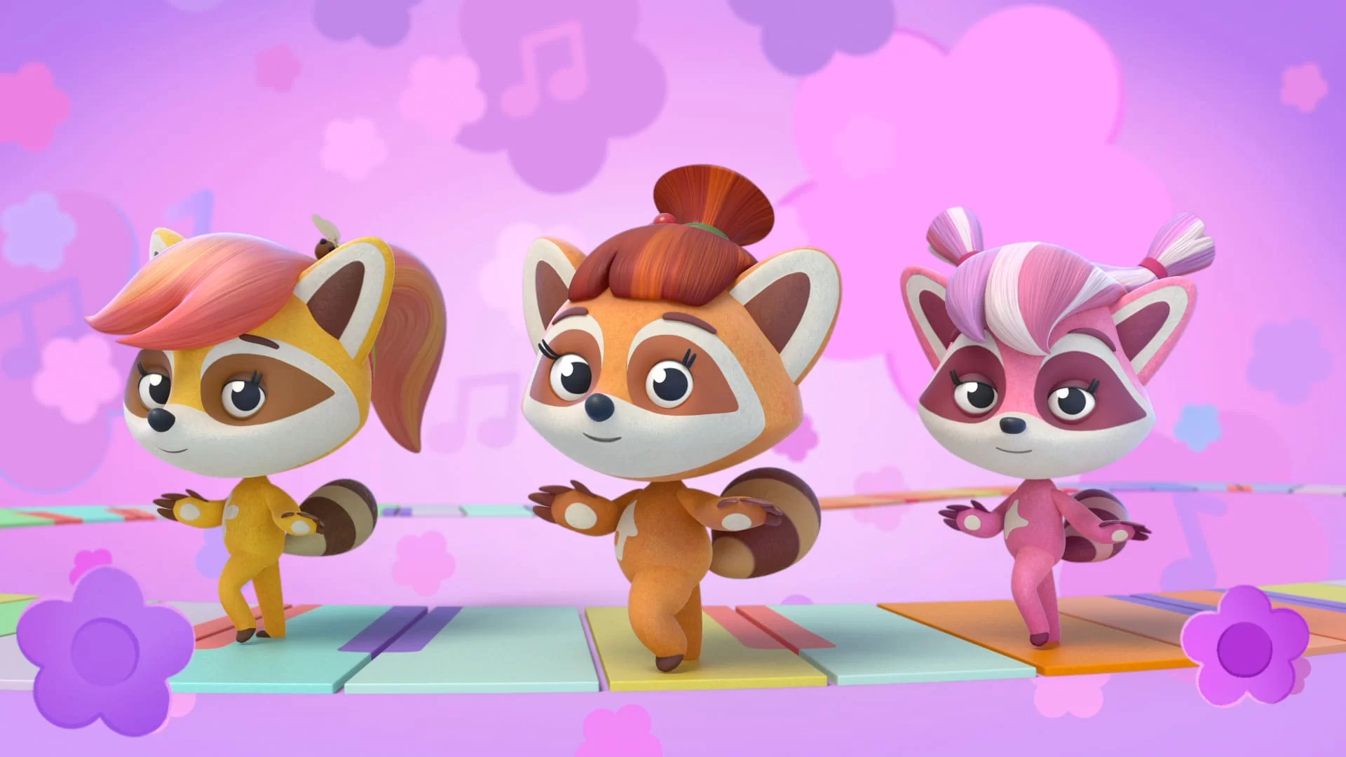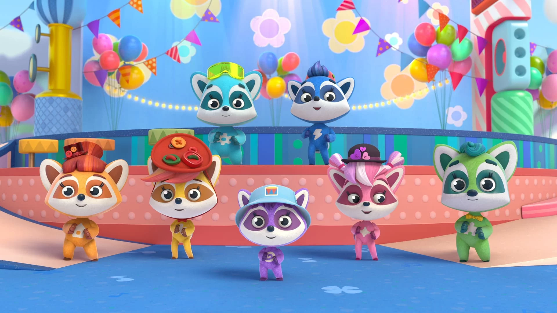 Seven playful and curious raccoons live in a music box which serves as their playground. In each episode, they perform funny songs with unexpected fantasy twists to introduce kids to a variety of new words and concepts. One of the series’ main objectives is to develop and enrich kids’ vocabulary using various language techniques.